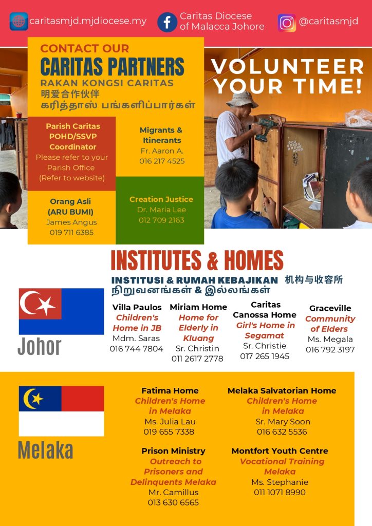Caritas MJD invites individuals to engage in meaningful ways of supporting vulnerable communities through different approaches to volunteerism. Whether through event-based initiatives, direct service interactions, or by applying specialized skills, volunteers can make a tangible difference in the lives of those most in need. This commitment to serving the poor reflects the core Christian values of love, compassion, and social justice, empowering individuals to create positive change and build a more inclusive and supportive society.
